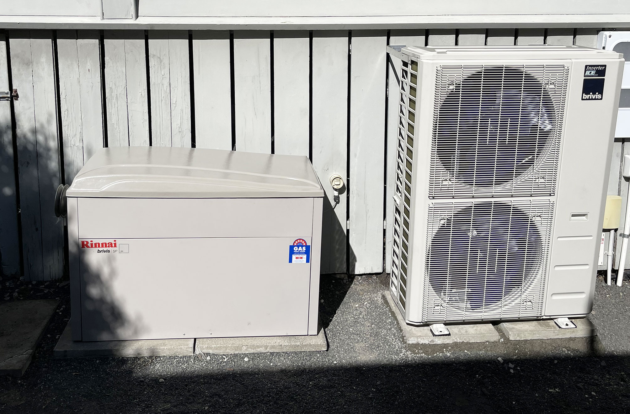 The cooling module comprises of an indoor coil and outdoor compressor, which utilises the same ductwork and grilles as the Rinnai SP series heating furnace.
