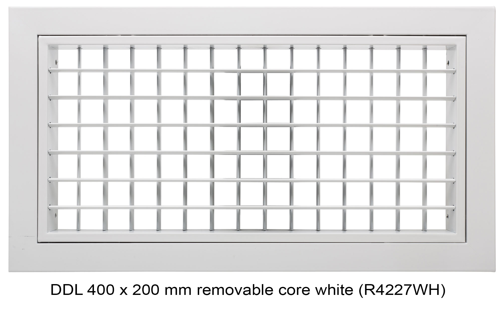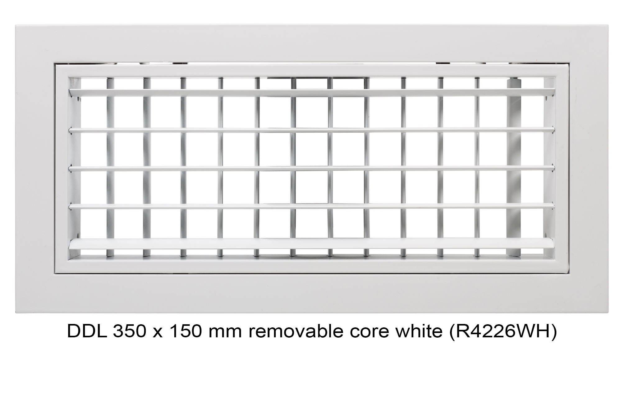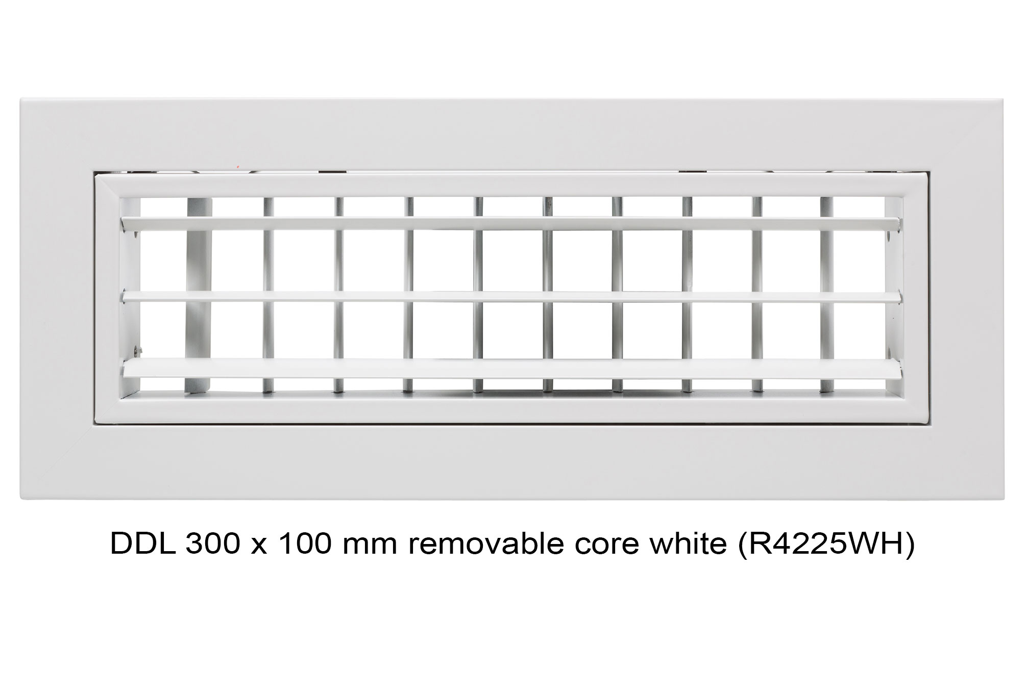A range of removable double deflection louvre (DDL) grilles for ceilings and walls. Three model sizes to choose from, refer images in gallery below. Deflection blades are adjustable individually.