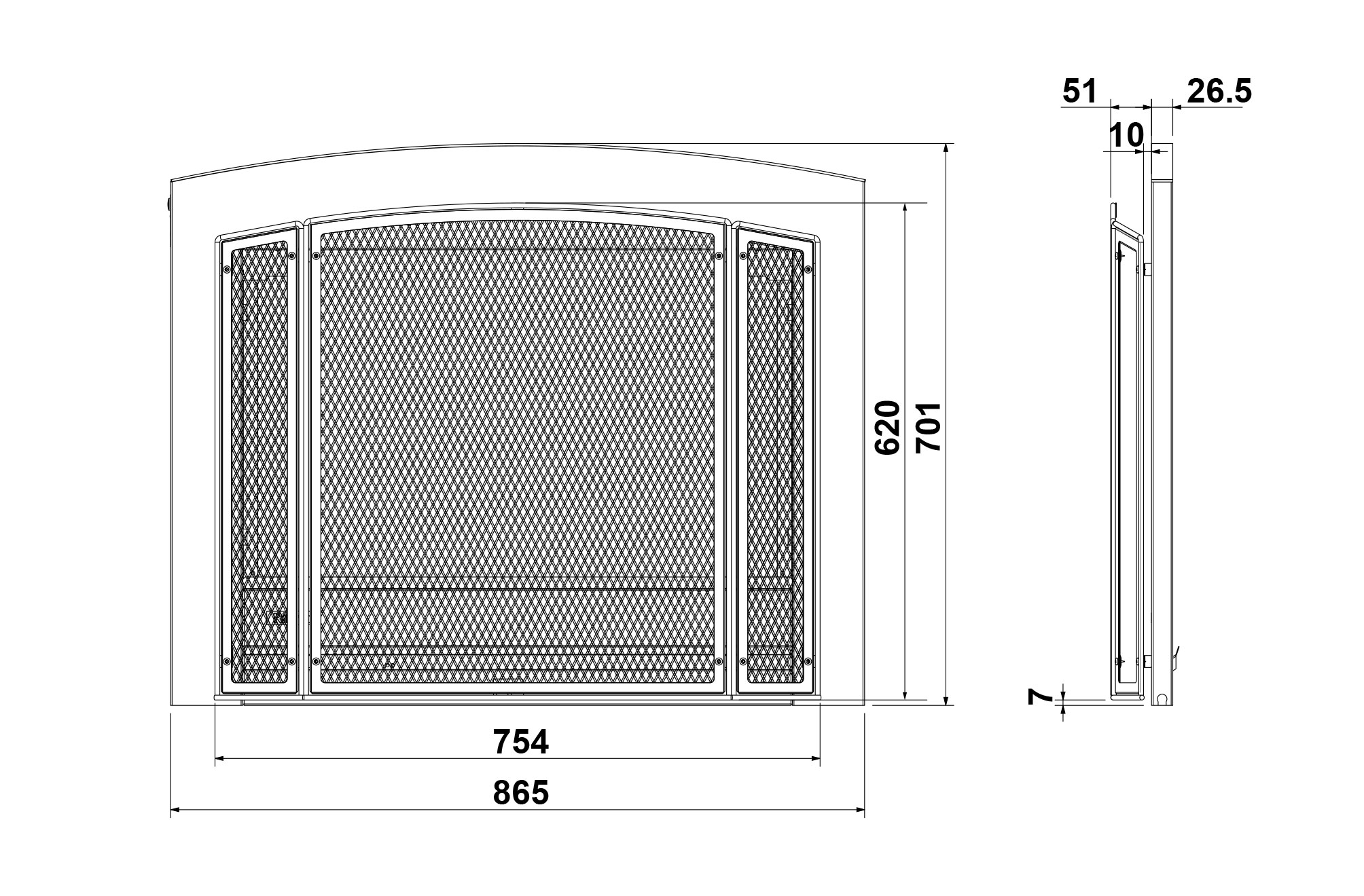 Designed to complement older villa style houses. The Classic Frame is curved and comes with an inset bronze dress guard and a black inner frame.