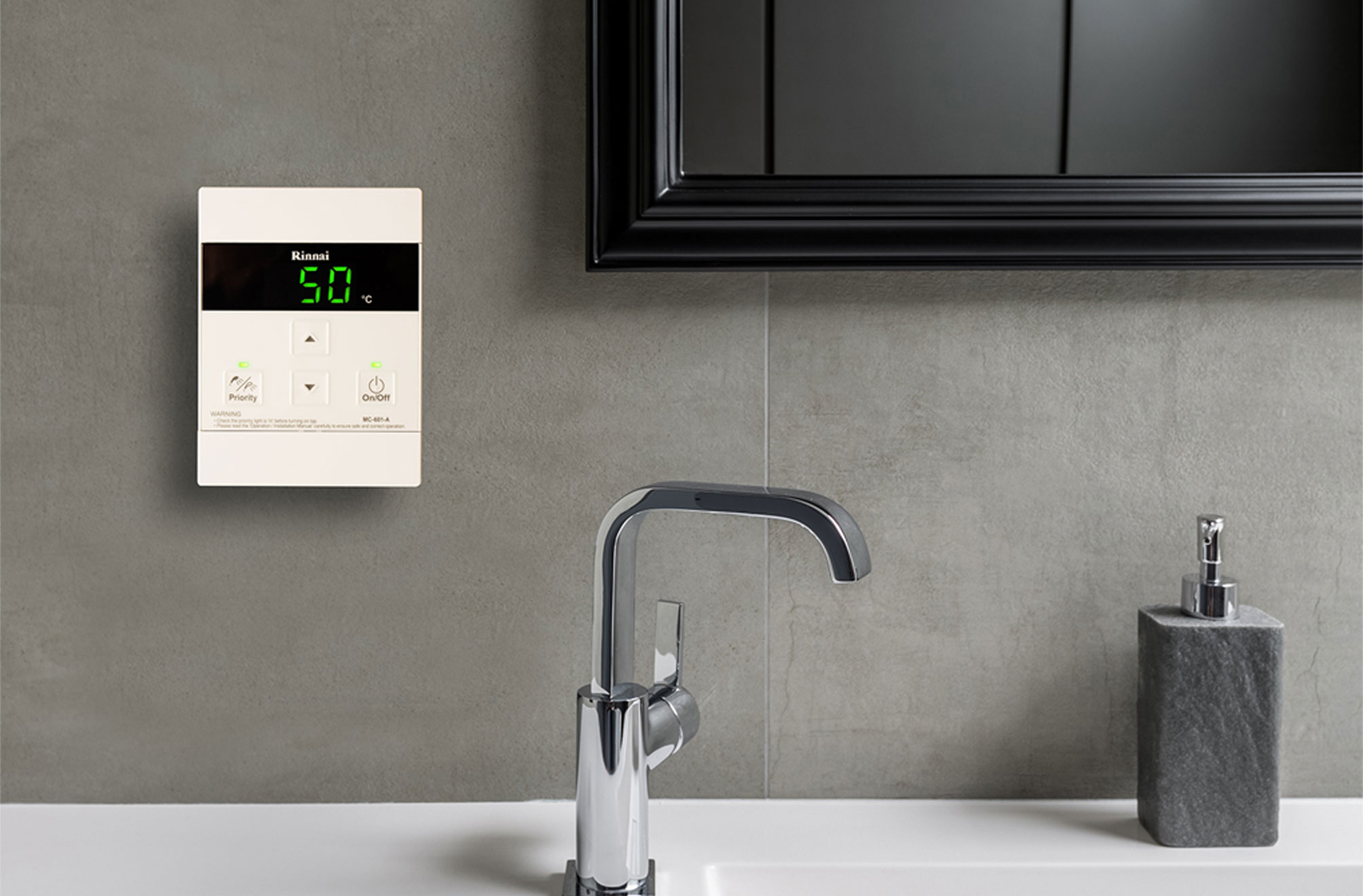 Installations with a Rinnai INFINITY continuous flow gas hot water heater installed, refer compatible water heater models in the ‘Tech Specs’ section. Each remote controller can be individually programmed, however the water heater can only deliver one set temperature at any time.