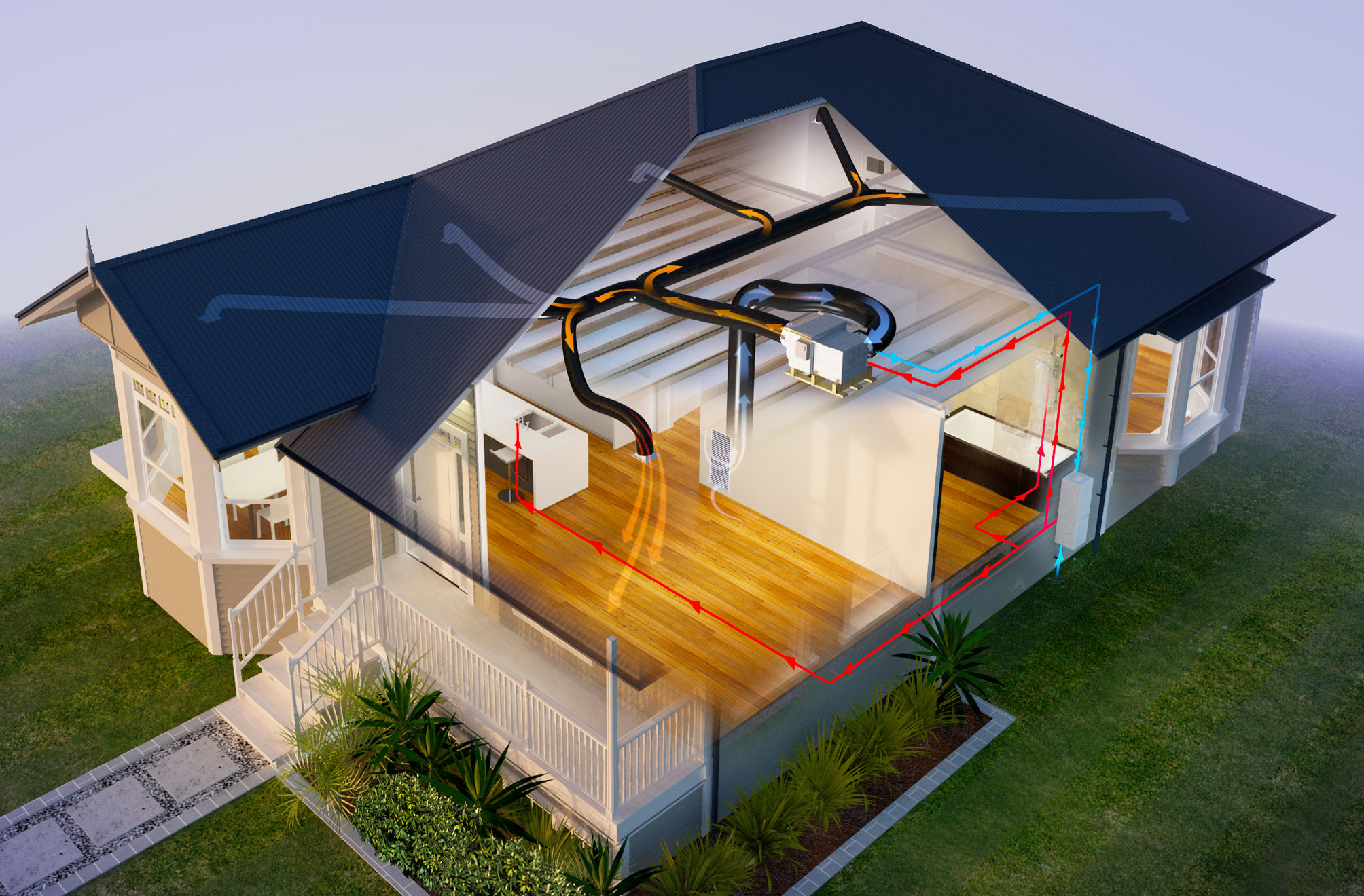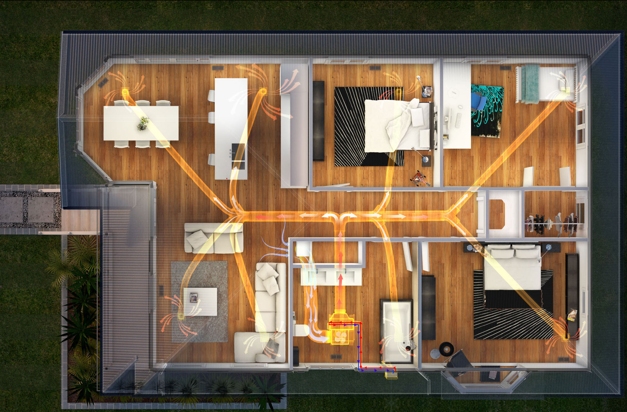 Homes where the iHeat unit can be installed in a ceiling space, or under the floor—subject to clearances shown below. The unit cannot be positioned outside.