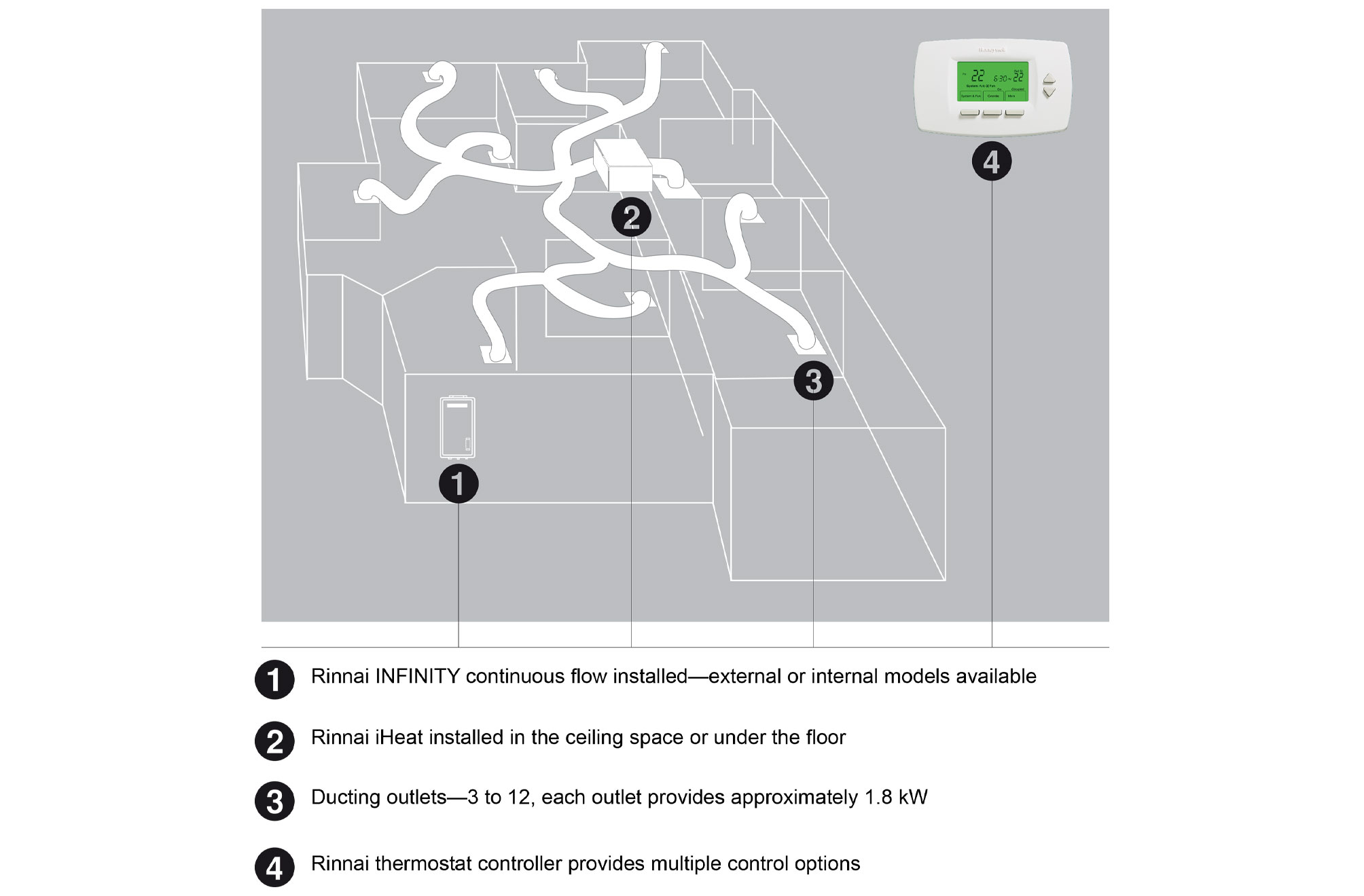* The Rinnai INFINITY A-Series is not suitable for use with an iHeat as the system cannot be set high enough to run both the hot water and heating.