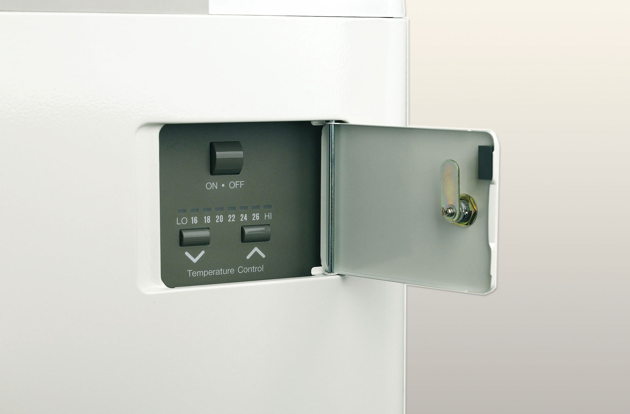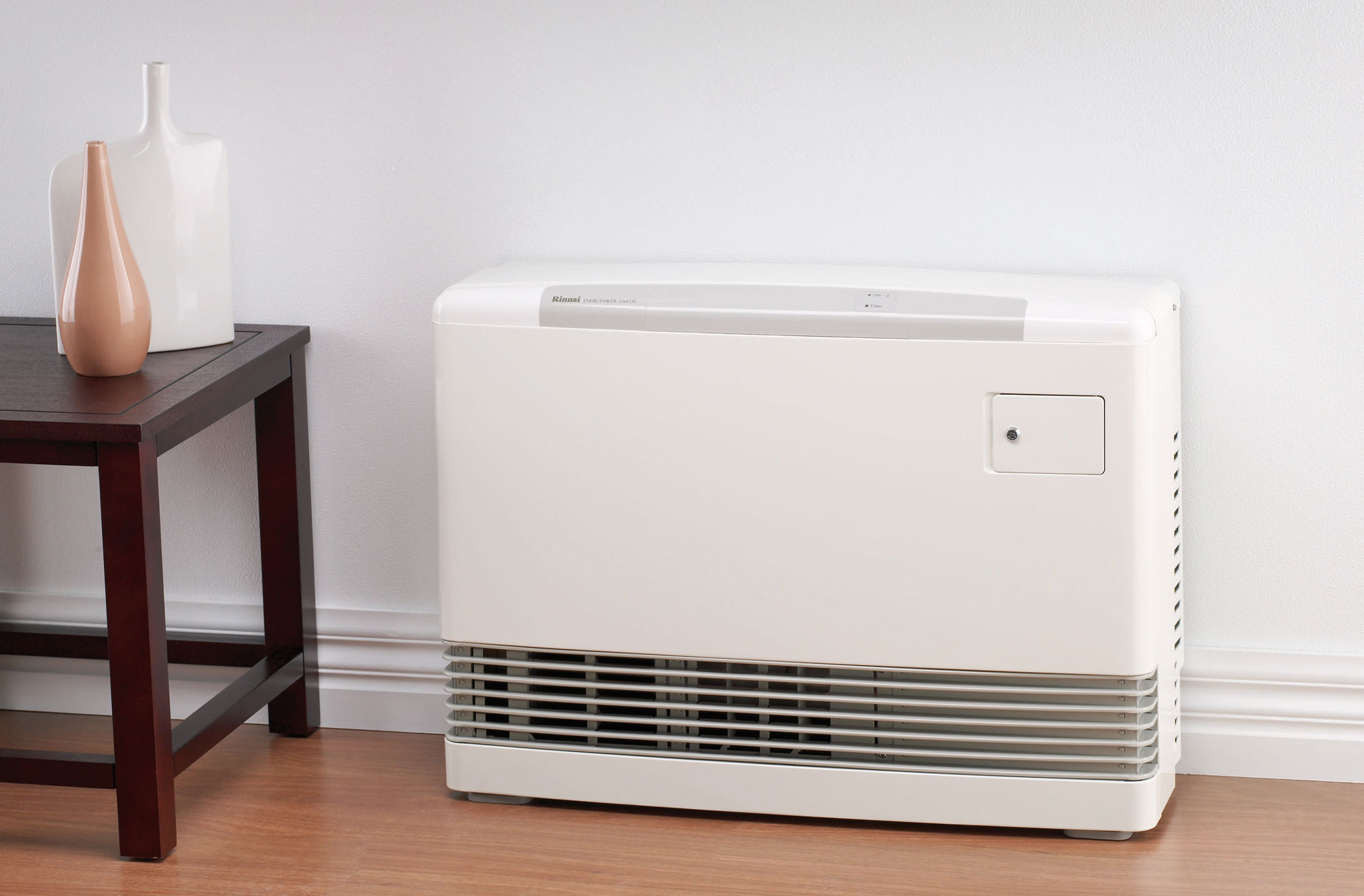 High efficiency power flued heater with programmable timers. Unit discharges warm air through louvres located at the base of unit. This means the room heats quickly as warm air is directed out into the room and not straight up. The FDT model has a control panel that is lockable.