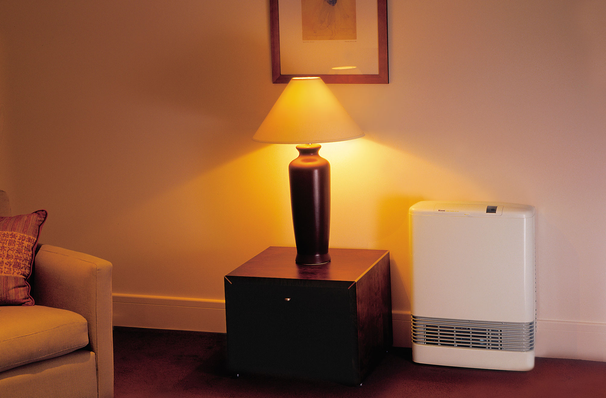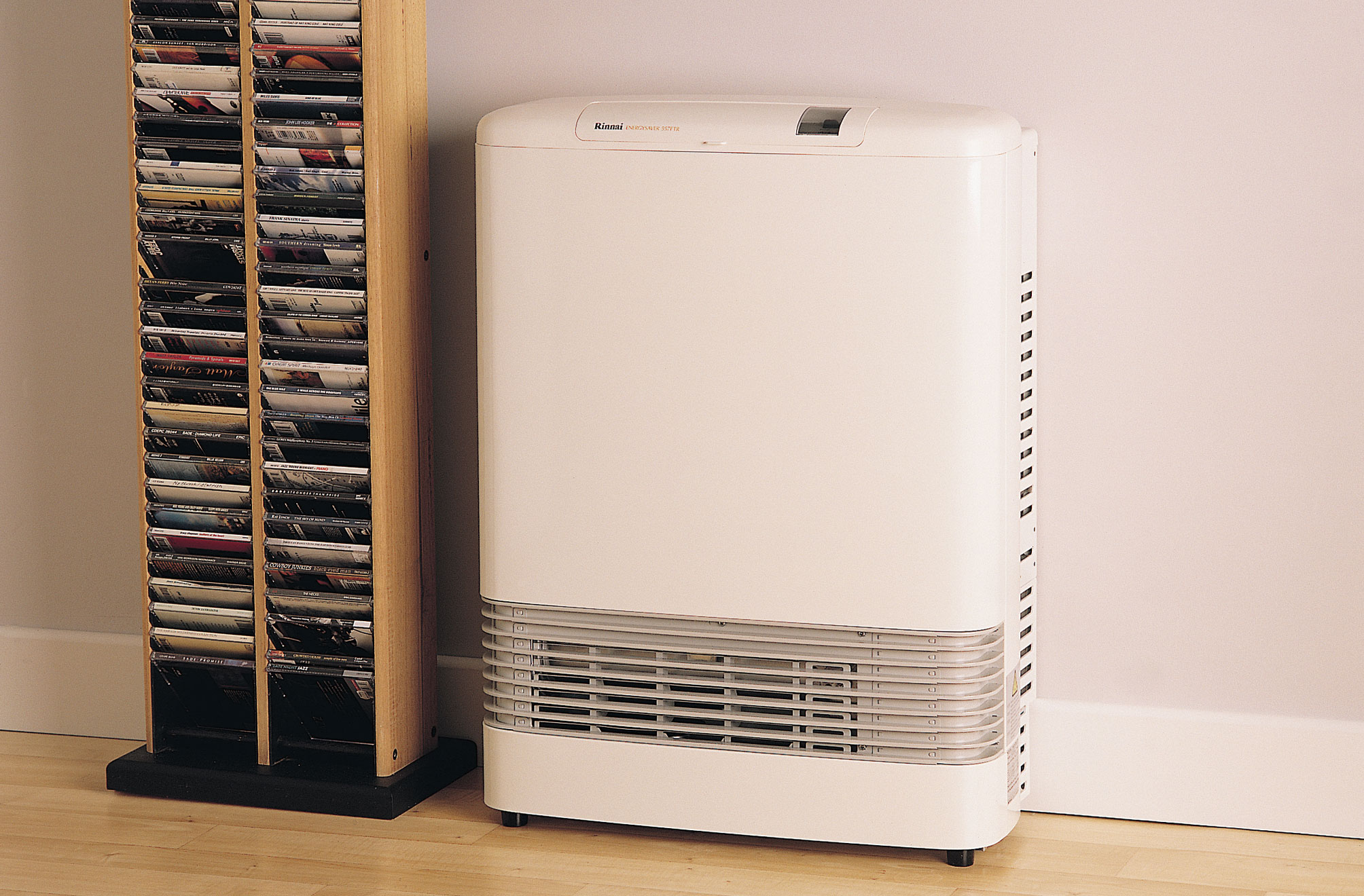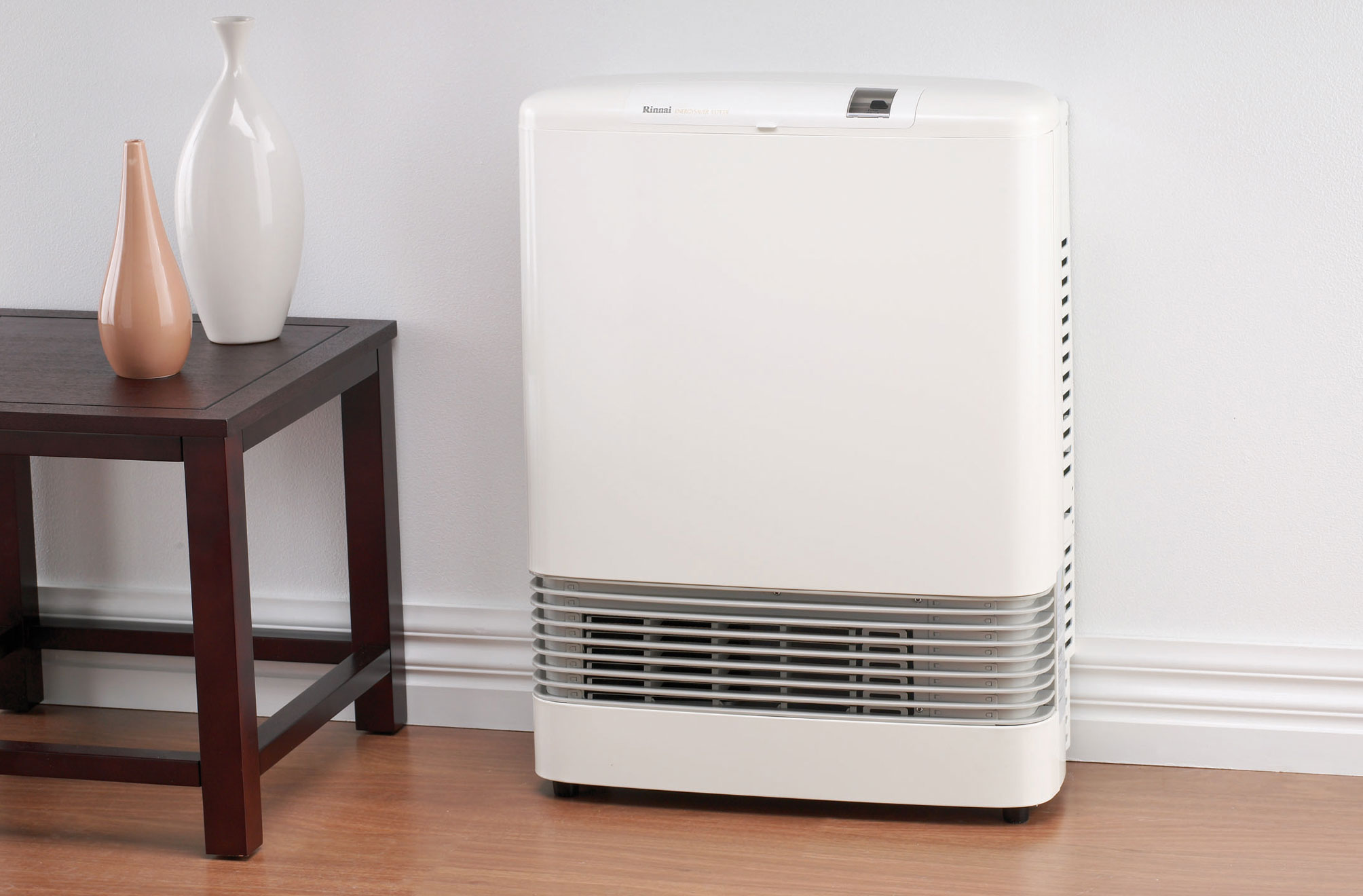 High efficiency power flued heater with programmable timers. Unit discharges warm air through louvres located at the base of unit. This means the room heats quickly as warm air is directed out into the room and not straight up.