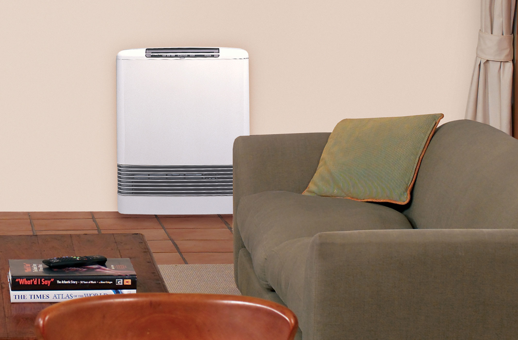 Residential heating appliance suitable for open plan areas such as living rooms, and bedrooms. Can heat up to 75 m2 (depending on geographical location).